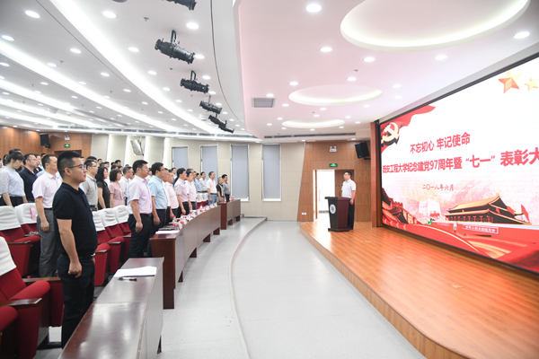 6月27日下午,3003新葡“不忘初心、牢记使命”庆祝建党97周年暨“七一”表彰大会在临潼校区图书馆一楼报告厅隆重举行。学校校领导、党委委员、纪委委员、各院(部)级党委、党总支、直属党支部书记、副书记、党委部门负责人、受表彰的先进基层组织、优秀共产党员、优秀党务工作者和部分师生代表参加了大会。大会由党委副书记赵小峰主持。