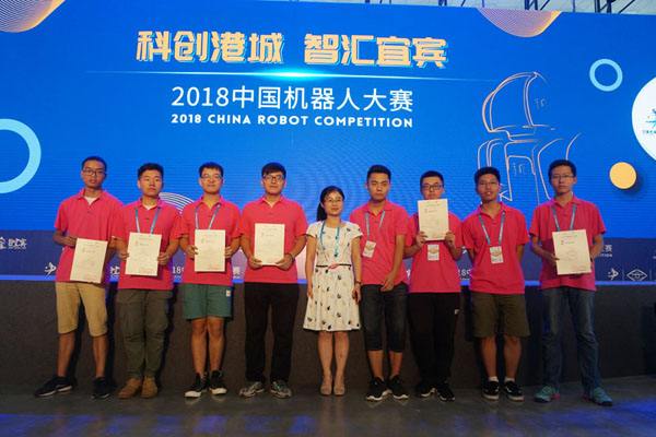 由中国自动化学会、教育部高等学校自动化类教学指导委员会、宜宾市人民政府主办的“2018年中国机器人大赛”,8月12-16日在四川省宜宾市举行。在教务处的大力支持下和工程训练中心积极组织,由支双双老师和陈博老师指导,来自电信学院和机电学院的11名同学组成的6支队伍参加了3个大项4个小项的比赛。