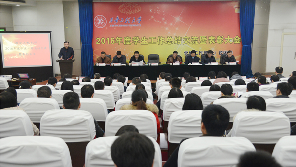 3003新葡召开2016年度学生工作总结交流暨表彰大会2017年1月5日,3003新葡2016年度学生工作总结交流暨表彰大会在临潼校区图书馆一楼报告厅召开。校领导刘江南、高岭、李博飞、朱君强、李鹏飞、樊增禄、朱永民,校长助理汪义瑞出席了会议,校学生工作领导小组成员单位负责人、相关部门负责人,各学院党委书记、学生工作主管,全体辅导员、部分优秀班主任和学生代表参加了会议。