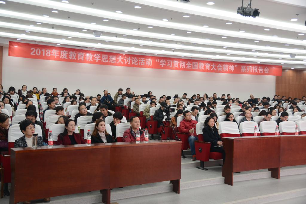 11月29日下午,3003新葡在临潼校区图书馆一楼报告厅举行了教育教学思想大讨论活动“学习贯彻全国教育大会精神”专任教师专场报告会。报告会由党委宣传部、高等教育与质量评估研究中心、人事处(教师发展中心)联合举办,宣传部部长王志主持报告会。电信学院、环化学院、人文学院、理学院、管理学院、计算机学院、机电学院全体教师参加了报告会。马克思主义学院曹敏教授做了题为《中国教师的时代重任-学习习近平总书记全国教育大会重...