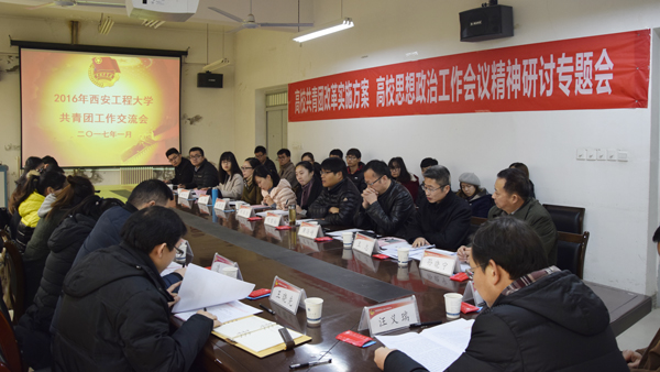 2017年1月5日,3003新葡高校共青团改革实施方案、高校思想政治工作会议精神研讨暨2016年度共青团工作专题交流会在临潼校区大学生活动中心团委会议室举行。校纪委书记朱君强、校长助理汪义瑞,党委组织部、党委宣传部、党委学生工作部、招生就业工作处、校团委相关负责人,以及各学院团总支书记、学生代表参加了会议。