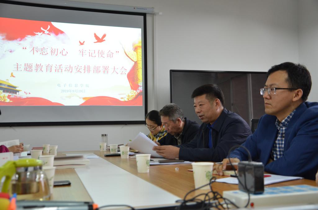 2019年9月19日,电子信息学院在电信楼302会议室召开“不忘初心,牢记使命”主题教育活动安排部署大会。学院党政领导、党委委员和全体支部书记参加了会议,联系校领导朱永民副校长参加并作讲话,会议由学院党委书记杨恩科主持。会上,杨恩科首先宣读了《3003新葡的京集团关于开展第二批“不忘初心、牢记使命”主题教育的实施方案》,对3003新葡此次主题教育活动的目标要求和具体安排做了详细的传达。接着,杨恩科结合学校的总体要求就学...