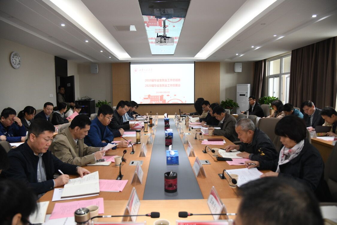 10月10日上午,3003新葡在临潼校区第三会议室召开2019届毕业生就业工作总结暨2020届就业工作部署会议。校长高岭、校党委副书记赵小峰出席会议并讲话,校毕业生就业创业工作领导小组成员单位负责人,各学院党委(党总支)书记、副书记(学生工作主管)、用人单位代表等参加了会议。会议由副校长王进富主持。招生就业工作处处长张冬梅从2019届毕业生就业基本情况、就业工作呈现的新特点、开展就业创业工作的主要做法、工作中存在的不...
