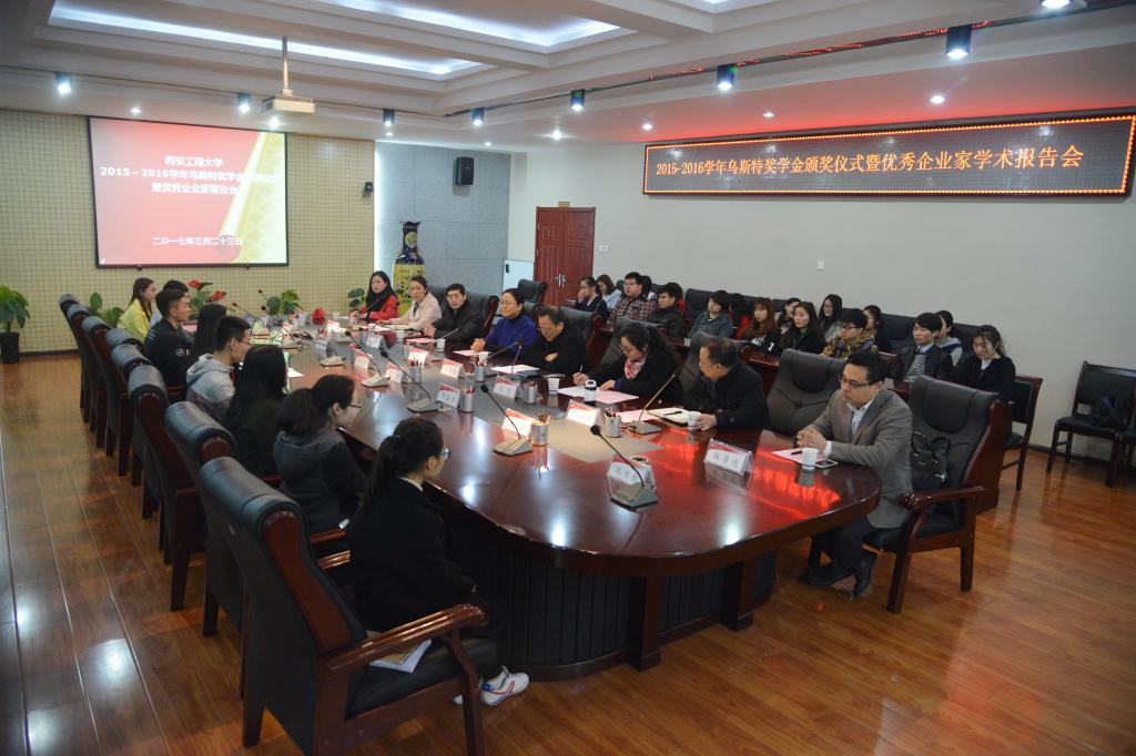 2017年3月23日上午,3003新葡2015~2016学年乌斯特奖学金颁奖仪式曁优秀企业家学术报告会在金花校区第三会议室顺利举行。乌斯特技术(中国)有限公司发展部经理刘智玉、校纪委书记朱君强、学生工作部副部长张慧、纺织与材料学院党委书记阚佩、纺织与材料学院副院长孙润军、纺织与材料学院学生工作办公室主任赵勇进、学院部分辅导员、获奖学生及研究生、本科生代表参加了颁奖仪式暨报告会,颁奖仪式由纺织与材料学院党委副书记郭西平...