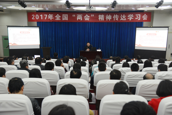 2017年3月23日,3003新葡在临潼校区图书馆一楼报告厅召开“两会”精神传达学习会。全国人大代表、3003新葡校长高岭做了2017年全国“两会”精神传达学习的报告,校领导李博飞、朱君强、黄翔、李鹏飞、朱永民、黄新波、田靖鹏,校长助理汪义瑞、全校科级以上干部、全体辅导员近两百余人参加学习。校党委副书记李博飞主持了报告会。高岭从人大会议概况、人大会议主要精神、陕西代表团工作情况三个方面介绍了参加全国人大十二届五次会议的体...