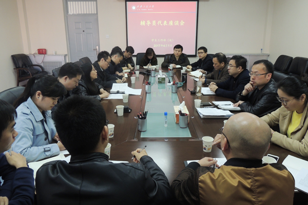 2017年4月1日上午,学校在临潼校区22-8楼220会议室召开了辅导员代表座谈会。校长高岭,校纪委书记朱君强,校团委书记王晓先,学生工作部副部长张慧、臧国强,各学院辅导员代表共19人参加了座谈会。座谈会由学生工作部部长黄海峙主持。座谈会上,参会辅导员分别结合自身工作实际畅谈工作体会,并就学生教育管理与服务、人才培养、辅导员队伍建设、学校发展等问题进行了交流发言。与会校领导认真听取了代表的发言,并适时就辅导员...