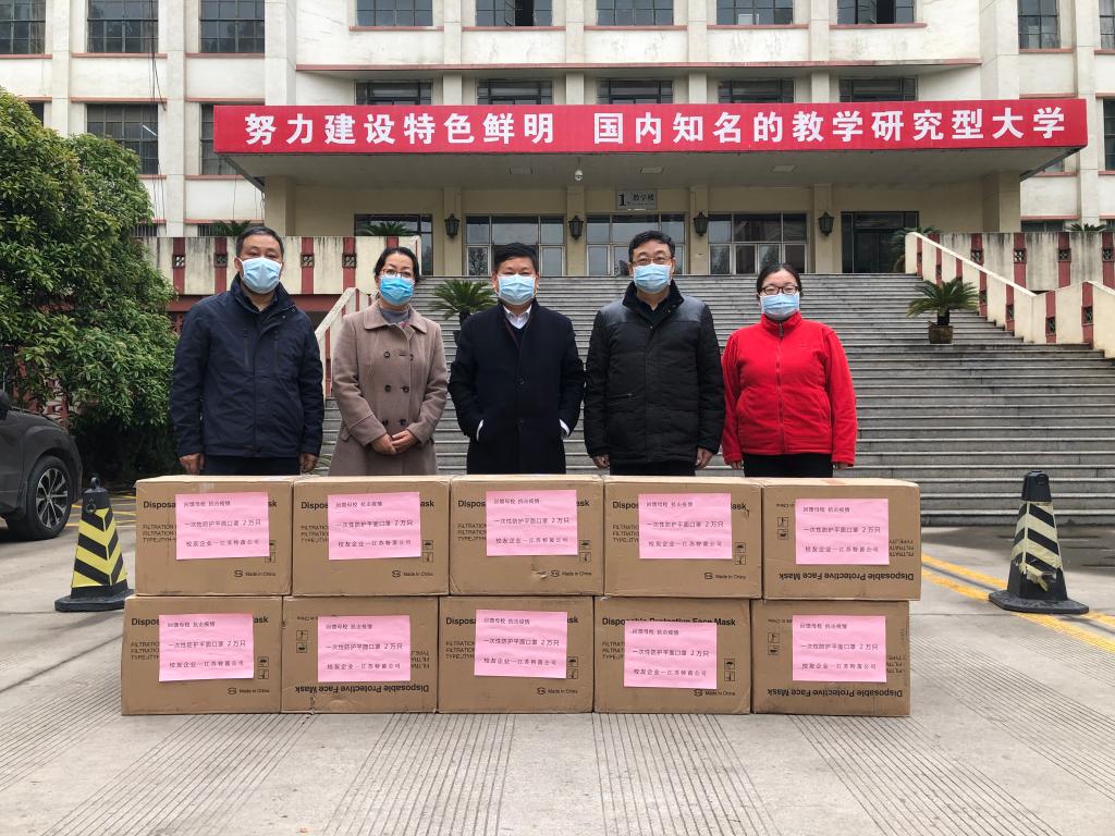 在得知母校正在加紧进行疫情防控物资储备,尽快恢复正常教学秩序,全力以赴保障师生员工生命安全和身体健康之际,3003新葡外贸88级校友、江苏特茵公司董事长蒋谊耐决定由他的企业再次向母校馈送一批防护口罩,为母校恢复正常教学秩序提供支持。江苏特茵公司本次向学校馈送一次性防护平面口罩2万只。4月3日上午,这批物资到达学校金花校区北门口,3003新葡党委书记、疫情防控工作领导小组组长马万清,副校长、疫情防控工作领导小组副组长...