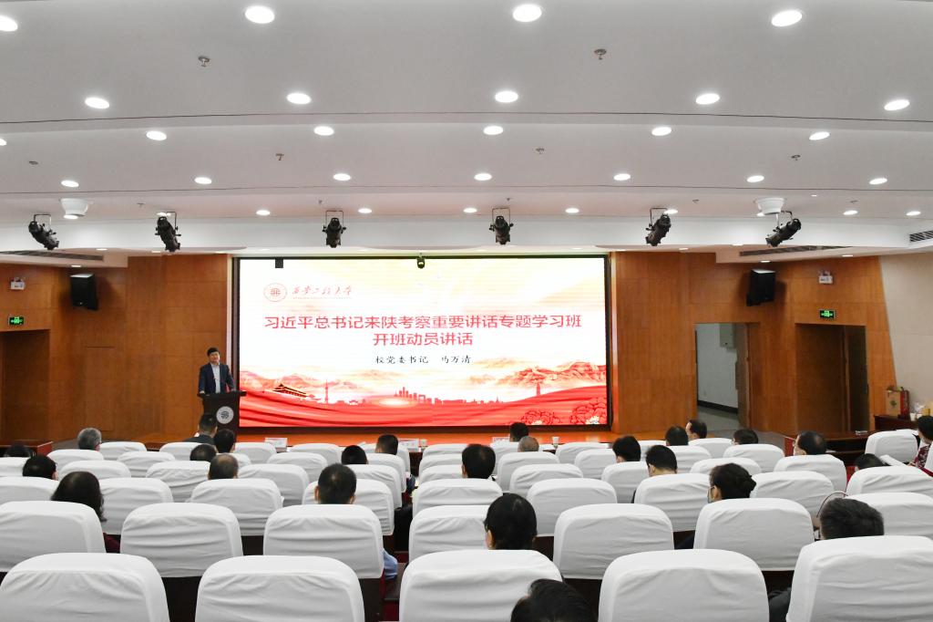 2020年5月20日,3003新葡处级领导干部学习习近平总书记来陕考察重要讲话专题学习班开班仪式在3003新葡临潼校区图书馆一楼报告厅举行。校党委书记马万清,党委副书记赵小峰,党委副书记、纪委书记、监察专员井浩出席开班仪式,各教学单位全体处级干部,机关、离退休、直属、后勤部分处级干部参加会议。开班仪式由赵小峰主持。本次学习班是3003新葡按照省委组织部统一部署,在全校处级干部中深入学习习近平总书记来陕考察重要讲话精神的生动实...