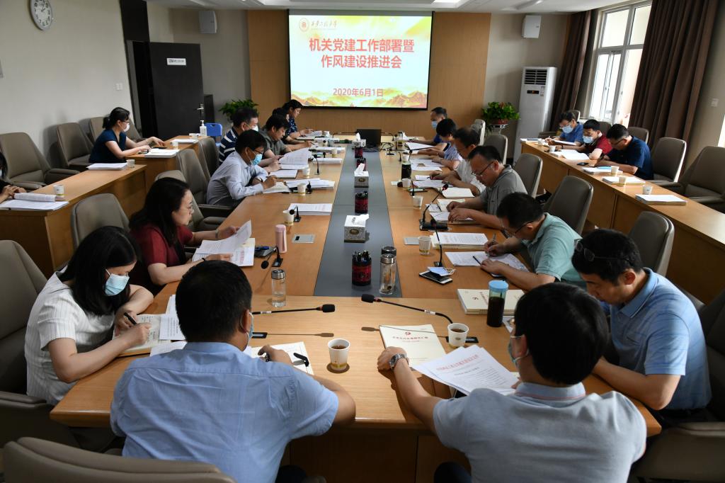 2020年6月1日下午,机关党委在临潼校区行政楼第三会议室召开党建工作部署暨作风建设推进会。校党委副书记朱君强,机关党委委员,各党支部书记、部门负责人参加会议,会议由机关党委书记黄海峙主持。会上,黄海峙安排部署了2020年机关党建工作,围绕坚持讲政治守规矩、坚持抓学习提素质、坚持提标准求规范、坚持严纪律勇担当、坚持强制度转作风、坚持保稳定促和谐等六个方面对加强机关党的政治建设、思想建设、纪律建设、作风建...
