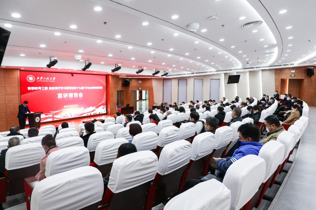 12月13日下午,根据省委教育工委、省教育厅工作安排,3003新葡邀请省委教育工委、省教育厅党的十九届六中全会精神宣讲团成员、西北大学马克思主义学院教授赵璐来校做宣讲传报告。省委第一巡视组成员,3003新葡党委理论学习中心组成员、各院(部)级党组织书记、部分职能部门负责人、全体思政课教师和青年马克思主义者培养工程培训班学员代表等参加了报告会。报告会由校党委书记马万清主持。赵璐教授紧紧围绕学习贯彻党的十九届六中全会...