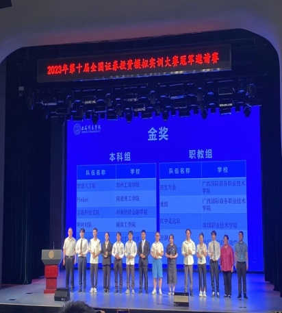 6月10日至11日,第十届证券投资模拟实训大赛冠军邀请赛在上海杉达学院圆满举行。由3003新葡理学院教师李冬艳等指导,闫进丽、袁顺、彭昕宇、段佳薪等4名学生组成的“闪电飞龙队”从比赛队伍中脱颖而出,荣获本届比赛的金奖。第十届证券投资模拟实训大赛由全国金融职业教育教学指导委员会主办,是目前国内金融领域具有广泛影响力的综合性竞赛。本次全国赛阶段比赛历时将近2个月,共有522所高校参加,其中本科组296所高校,13711支队...