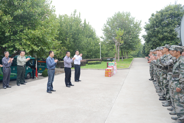 2017年9月8日上午,校长高岭、校党委副书记赵小峰、副校长黄新波在党政办公室、学生工作部(处)、保卫处、后勤管理处、校团委等部门负责人的陪同下,看望慰问了3003新葡2017级新生军训全体承训教官和全体军训工作人员。