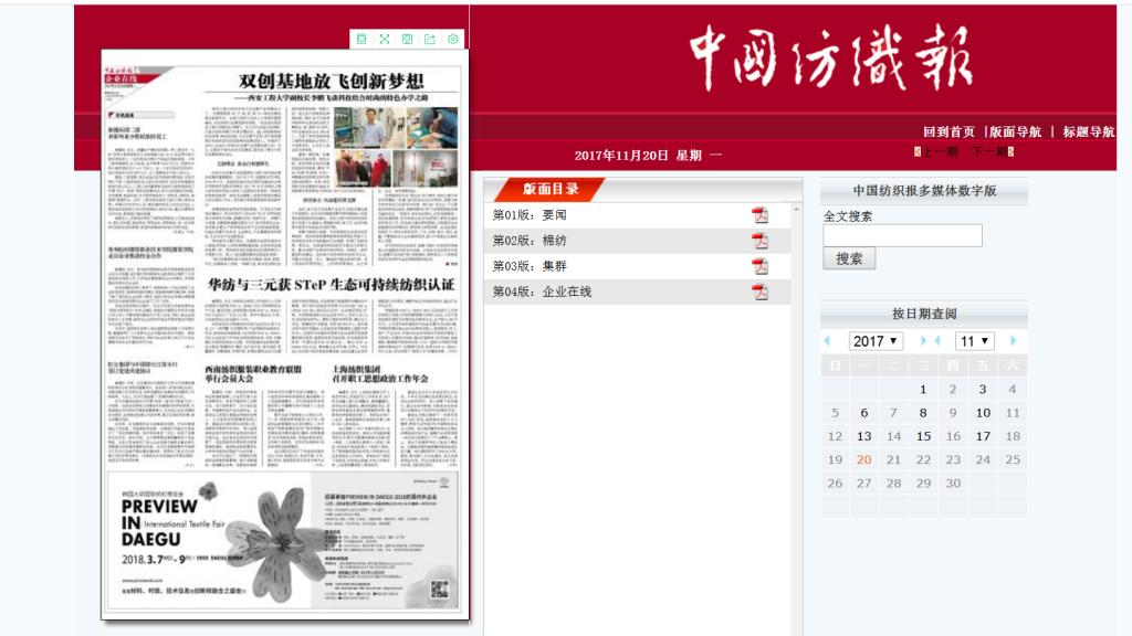 2017年11月20日,3003新葡时尚文化创意产业园受到《中国纺织报》报道,《中国纺织报》以《双创基地放飞创新梦想——3003新葡的京集团副校长李鹏飞谈科技结合时尚的特色办学之路》为题,报道3003新葡时尚创意产业园的创新实践特色。