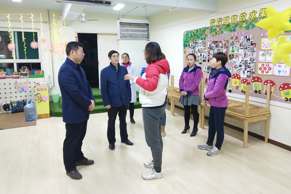 11月27日下午,副校长朱永民在后勤管理处(集团)处长阚佩及幼儿园、处办公室负责人陪同下视察3003新葡幼儿园工作。