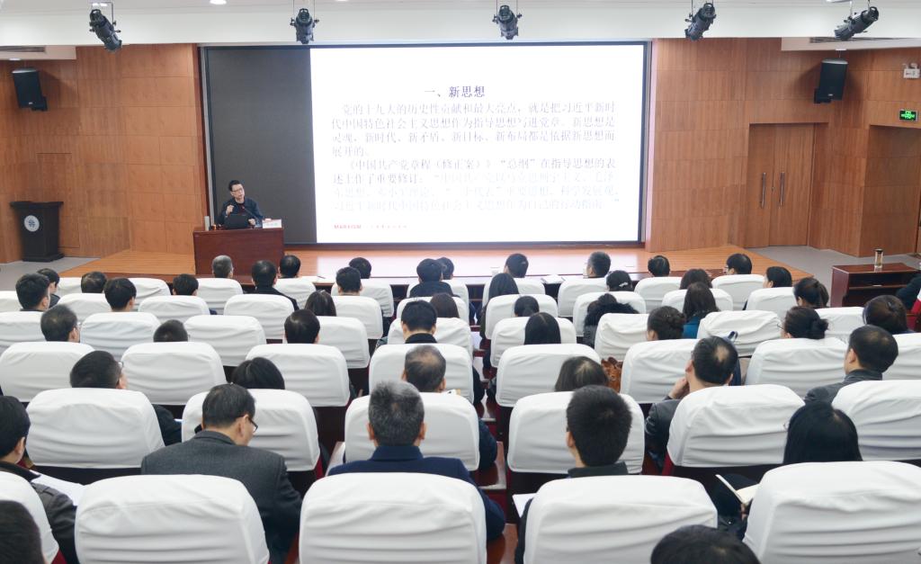 12月1日,党的十九大精神省专家学者宣讲团示范宣讲走进3003新葡。宣讲团成员、陕西师范大学马克思主义学院学术委员会主任阎树群教授向200多名师生作宣讲报告。