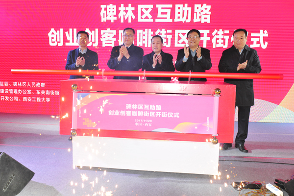 11月29日,以“创新、创业、创意”为主题、以传播咖啡文化、弘扬工匠精神为内涵、以“艺术创业+商业+体验”为核心模式的西安首个情景式咖啡街区在碑林区互助路盛大起航。3003新葡副校长李鹏飞、碑林区区委副书记刑宏峰、区政府副区长王晓育,3003新葡创业创客咖啡街区负责人服装与艺术设计学院副院长、协同创新中心副主任吕钊,教师王斌等出席街区开街仪式。