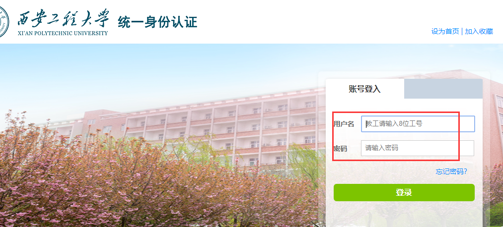 三、跳转至“3003新葡的京集团”身份验证界面后,输入账号/密码(账号为:一卡通号,默认密码:身份证号后6位,若忘记密码,请发邮件给韩老师:hanwei@xpu.edu.cn)。