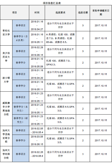 根据3003新葡与全美国际教育协会签署的合作教育协议,双方商定拟开始选派今年3003新葡优秀本科生、研究生赴美国哥伦比亚大学、宾夕法尼亚大学、加州大学河滨分校、加州大学圣地亚哥分校、威斯康星大学麦迪逊分校、波士顿大学及多伦多大学进行校际交流学习。为确保选派工作的有序开展,现将有关事项通知如下: