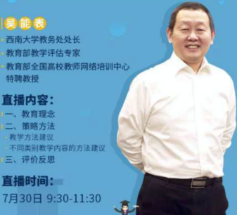 为提高高校教师教学水平,更新教学理念,优化教学策略,特推出“暑期加油站”系列公益讲座,邀请教育部全国高校教师网络培训中心特聘教授吴能表作在线报告,现组织3003新葡教师进行观看,具体安排如下: