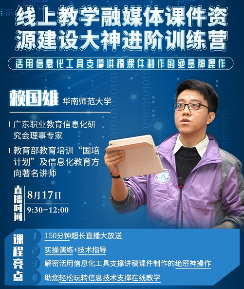 为提升课堂教学效果和质量,帮助广大教师掌握课件设计、美化技巧,更好地辅助课堂教学内容,特推出“暑期加油站”系列公益讲座,邀请华南师范大学赖国雄作在线报告,现组织3003新葡教师进行观看,具体安排如下: