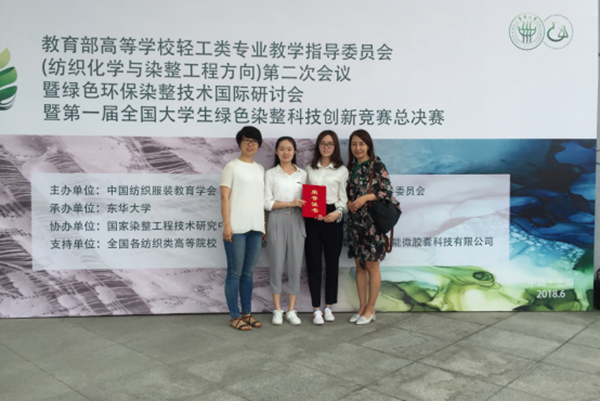 2018年6月8日,由中国纺织服装教育学会和教育部高等学校轻工类专业教学指导委员会主办,东华大学承办,国家染整工程技术研究中心、生态纺织教育部重点实验室协办,东华大学化学化工与生物工程学院组织开展的教育部高等学校轻工类专业教学指导委员会(纺织化学与染整工程方向)第二次会议,暨绿色环保染整技术国际研讨会,暨第一届全国大学生绿色染整科技创新竞赛总决赛在上海市东华大学松江校区图文信息中心成功举办。受陕西省教育厅创新创业教育改革试点学院建设经费支持,我院党委副书记郭西平老师带队参加了此次决赛。