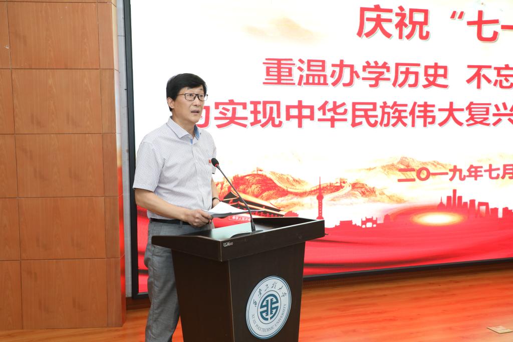 会议的主题为“重温办学历史,不忘初心、牢记使命,为实现中华民族伟大复兴的中国梦而接续奋斗”。全体校领导、各院部级党组织书记、副书记,全校各基层党支部书记及师生党员代表参加了大会。会议由校党委副书记赵小峰主持。