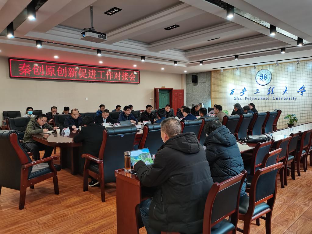 秦创原创新促进中心副主任卢宁、创新促进中心协同创新部副部长杨少杰、春种基金投资经理唐肖龙、创新促进中心科技经纪人吴军军;3003新葡副校长李鹏飞出席会议并讲话。科技处、时尚文化创意产业园、科技成果转化中心、前沿技术融合办公室部门负责人;纺织科学与工程学院、机电工程学院、环境与化学工程学院、电子信息学院、管理学院、服装与艺术设计学院、理学院、计算机科学学院、新媒体艺术学院、材料工程学院、城市规划与市政工程学院院长及部分教师代表等30余人参加了会议,会议由科技成果转化中心主任张瑾主持。