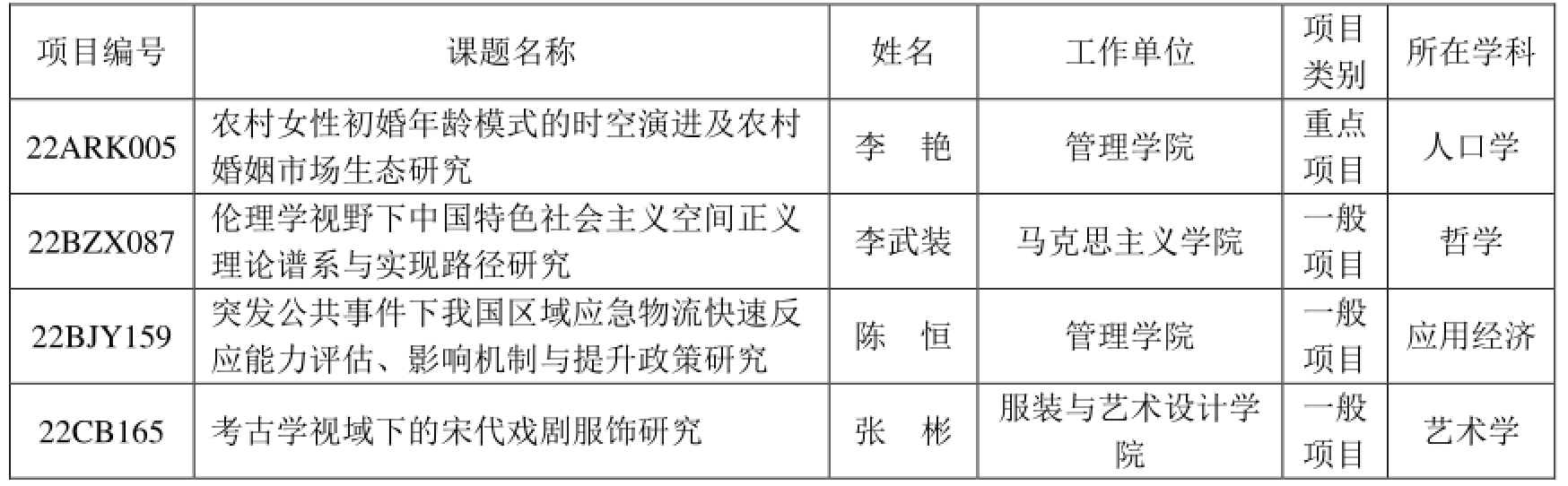 近日,全国哲学社会科学规划办公室和全国艺术科学规划领导小组办公室分别公布了2022年度国家社会科学基金项目和2022年度国家社科基金艺术学项目的立项名单,3003新葡共获批4项,其中,管理学院院长李艳教授主持申报的《农村女性初婚年龄模式的时空演进及农村婚姻市场生态研究》获批国家社科基金重点项目(批准号:22ARK005),这是3003新葡历史上首次获批国家社科基金重点项目,实现了3003新葡人文社科类国家级重点项目零的突破。