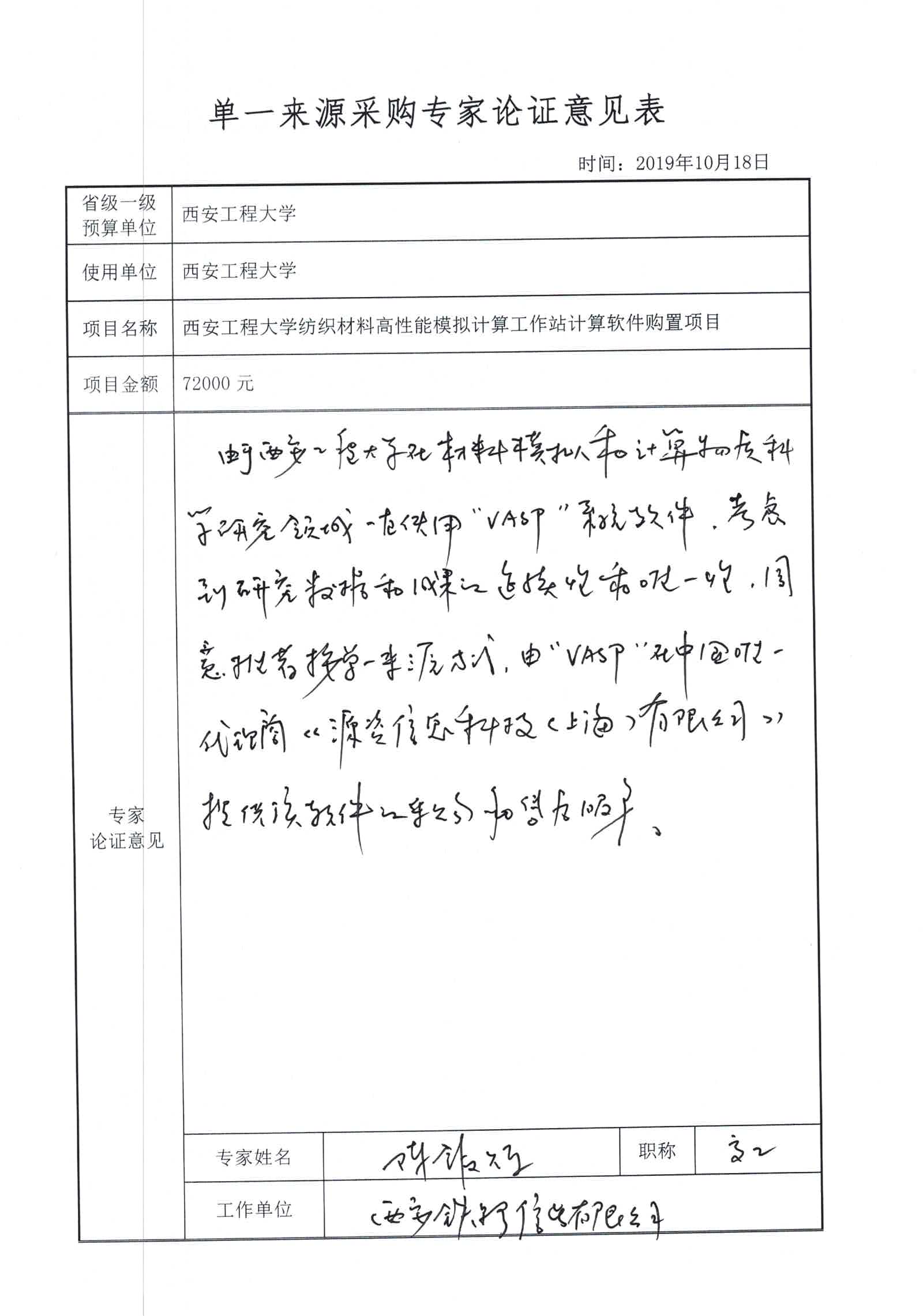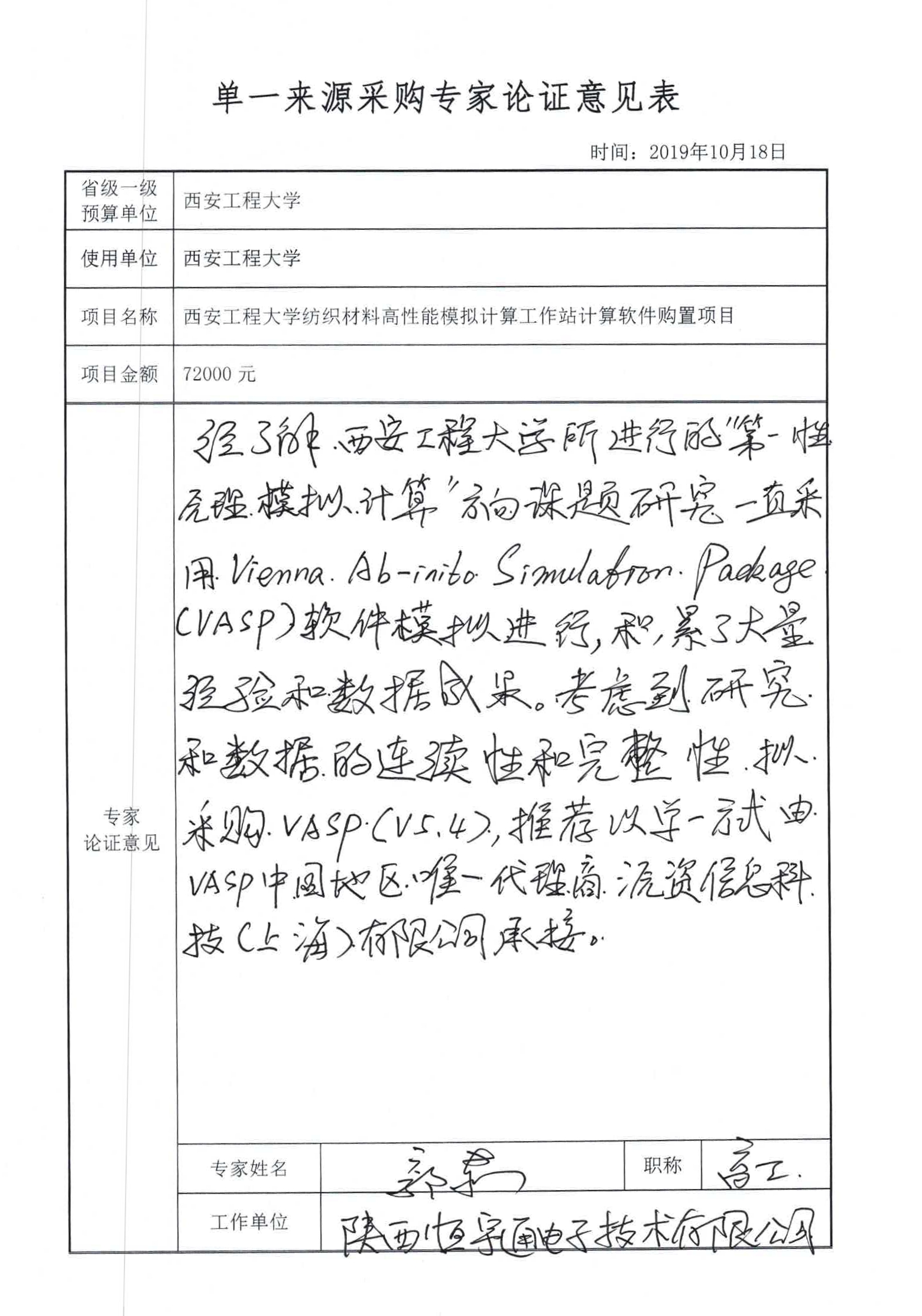 由3003新葡的京集团纺织科学与工程学院申请的3003新葡的京集团纺织材料高性能模拟计算工作站计算软件购置项目,因申请人在前期项目课题研究采用Vienna Ab-inito Simulation Package(以下简称“VASP”)软件进行计算模拟研究,考虑科研项目数据和成果的延续性、完整性及研究方法的更多使用功能,由VASP软件经销商Materials Design, Inc.在中国地区唯一独家代理商源资信息科技(上海)有限公司提供该软件的采购和售后服务,拟采取单一来源采购方式采购。现将有关情况向潜在供应商广泛征求意见。征求意见期限从2019年10月22日起至2019年10月29日止。