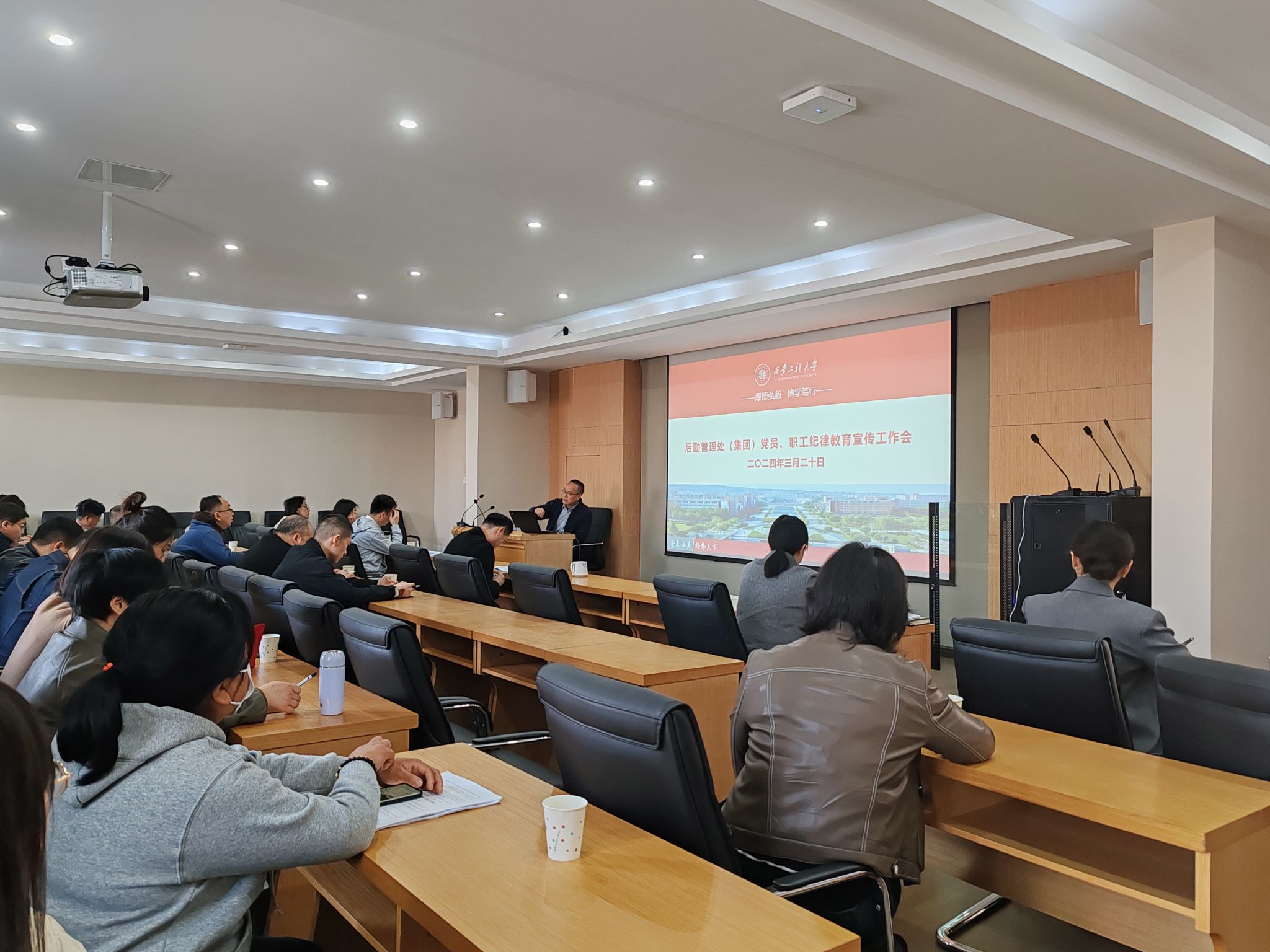 为进一步增强党员、干部、职工遵纪守法意识和行动自觉,根据中央关于巩固拓展主题教育成果意见和中国共产党第二十届中央纪律检查委员会第三次全体会议精神,3月20日上午,后勤管理处(集团)党总支在临潼校区行政楼321会议室组织召开党员、职工纪律教育宣传工作会议。后勤管理处(集团)党总支书记杨森主持并领学了《中国共产党纪律处分条例》和《事业单位工作人员处分规定》。